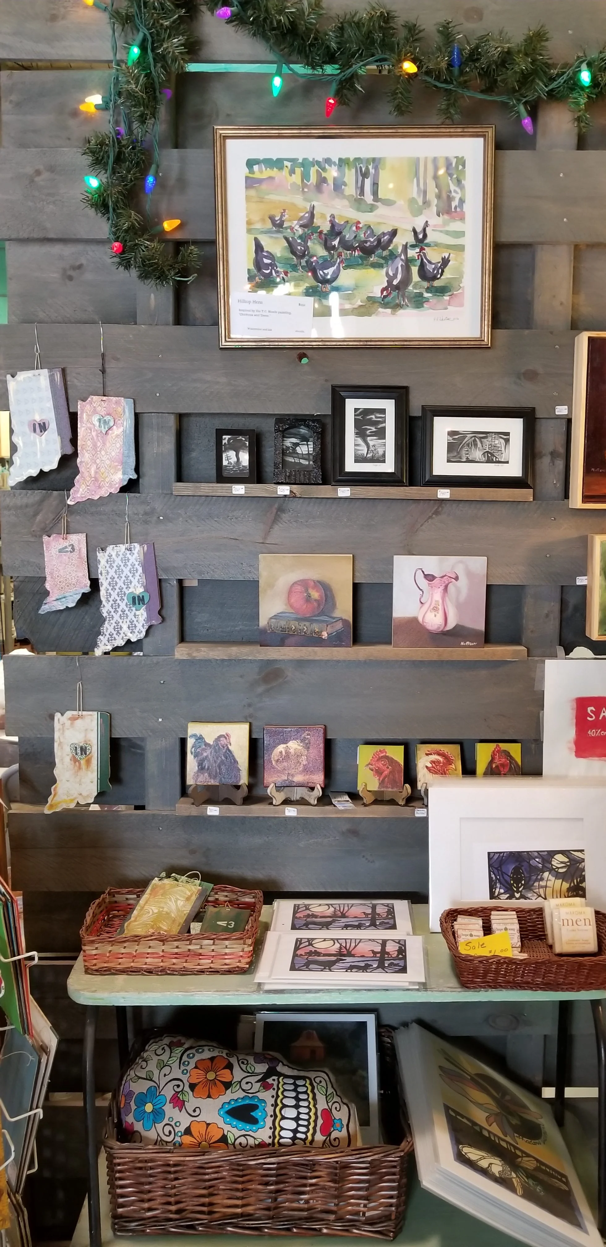 Julie is able to produce her own work all while staffing the retail side and giving a local platform for other local artists and makers. “It’s empowering and fulfilling. It’s great to get recognition for your work and talent. And I’m all about community and collaboration…The other local artists that have work in here send people in so that has been very helpful and collaborative. Nobody ever does anything alone, there’s always other people around you helping you out.”