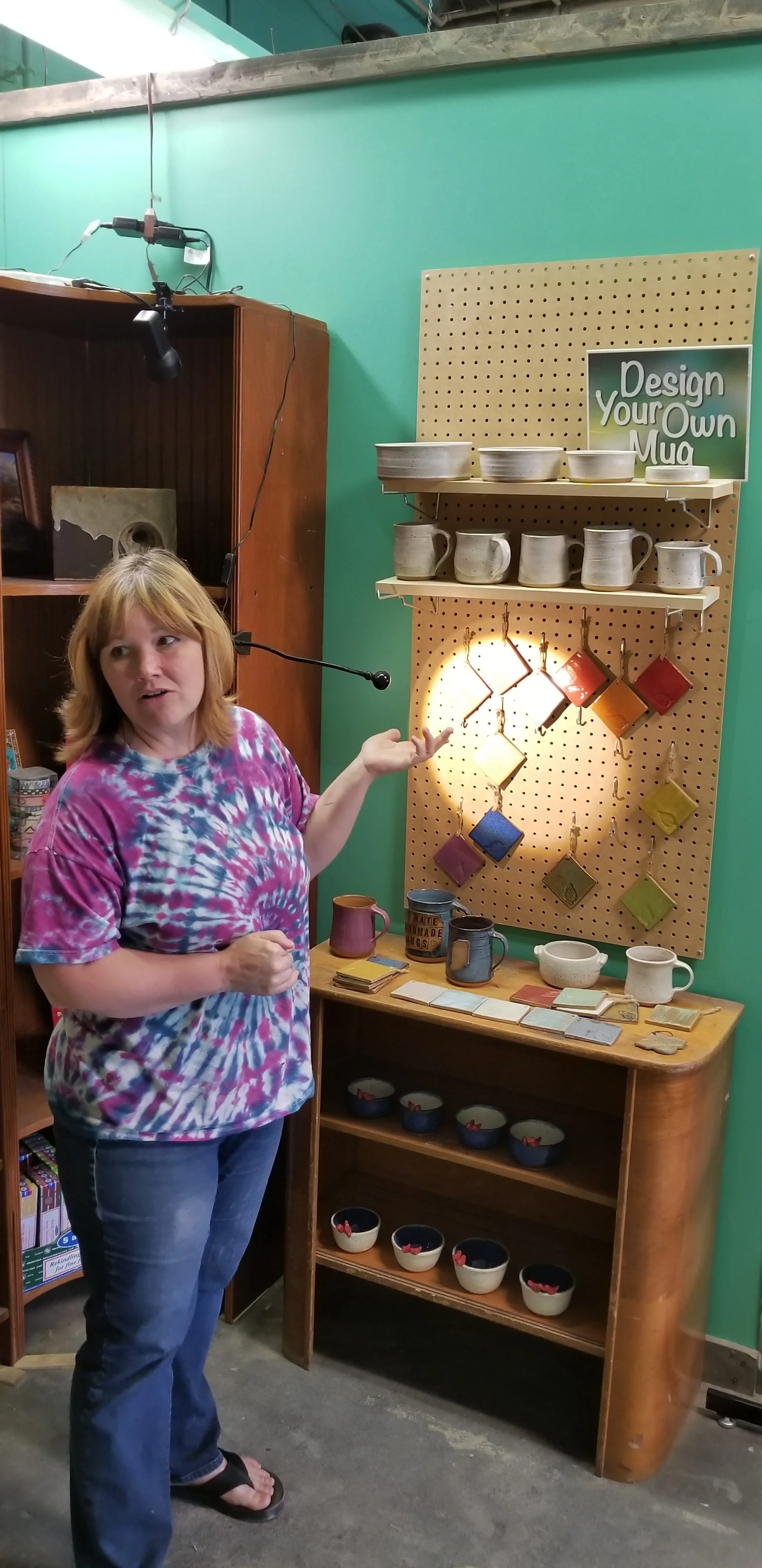 “I start with wet clay and if it’s a thrown item I start on the wheel or sit at the table to hand build and make enough to fill the kiln up. Everything gets bisque-fired, which is turning it from clay into ceramic at a low temperature and then it gets coated in glaze and then glaze-fired, so that’s my normal day,” says Julie Edwards of local arts and gifts shop Indy Artsy. This artist-entrepreneur found the perfect spot to set up her own shop and studio here on the Near Eastside in May of 2017. One year later, she looks back on her successful first year as a combination of personal determination and community